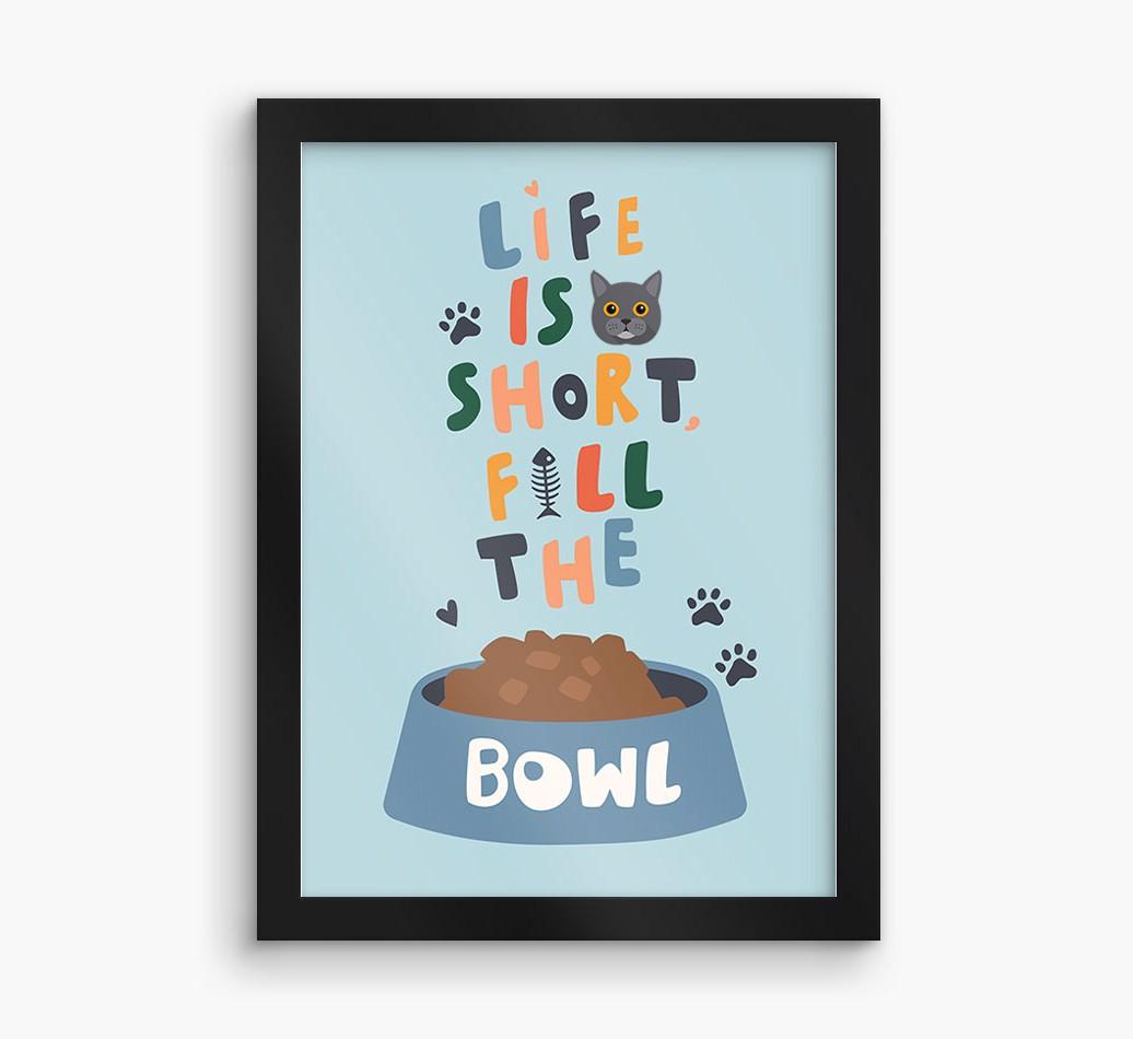 Life Is Short, Fill The Bowl: Personalized Cat Framed Print