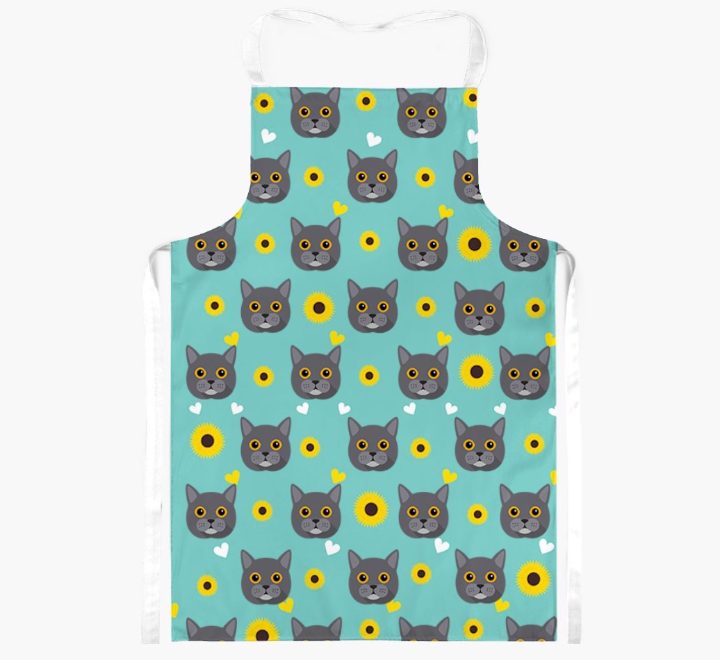 This apron has a delightful sunflower and heart pattern, and best of all - it's personalized with Chartreux's face too! This cute and colorful apron is sure to put a smile on every cat lover's face.