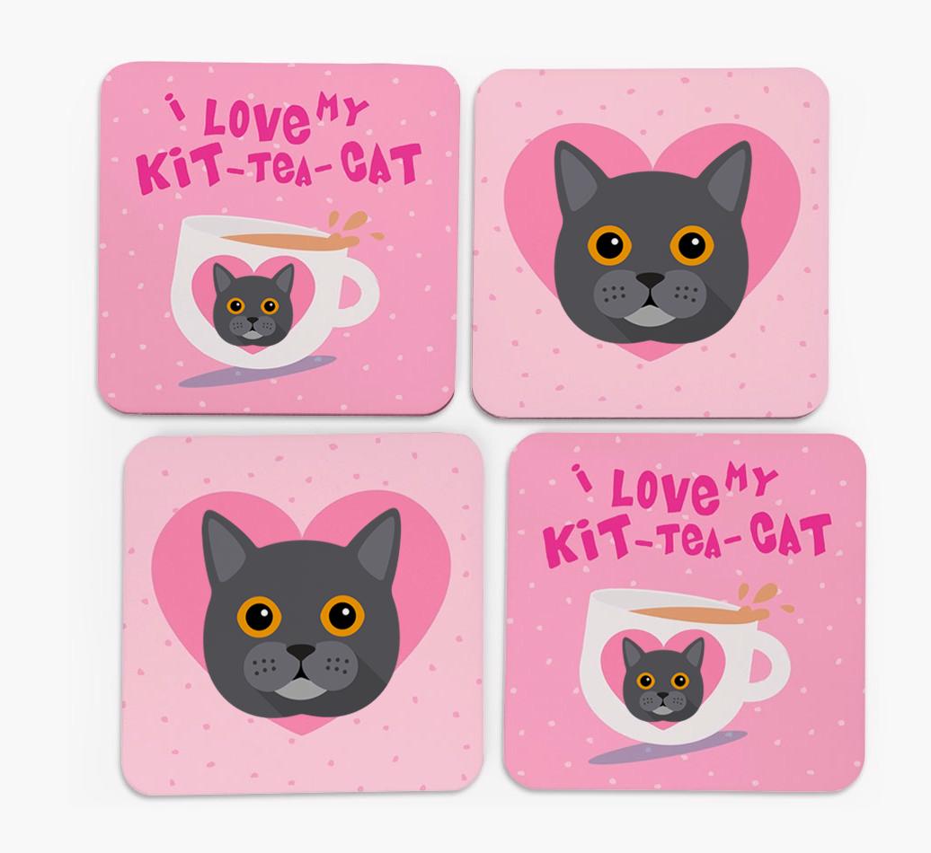 'I Love My Kit-Tea-Cat' - Personalized Chartreux Coasters (Set of 4)