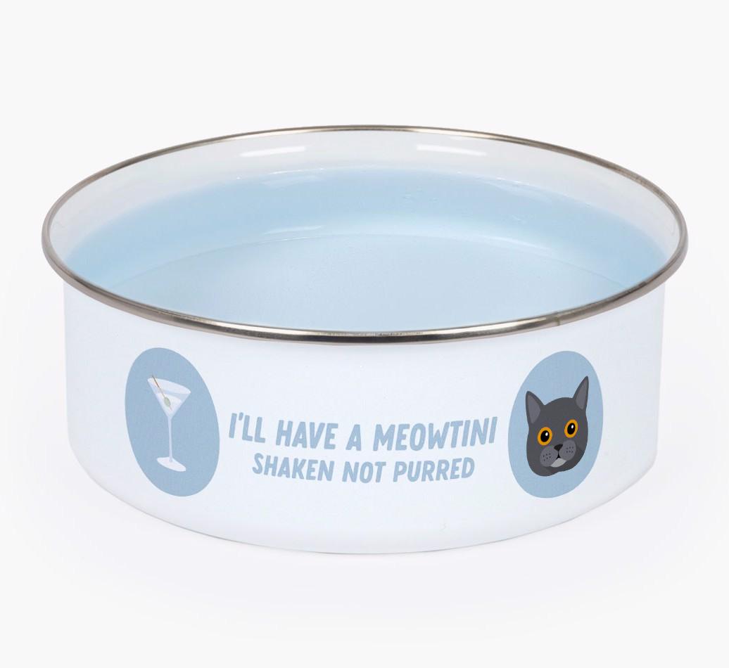 Meowtini: Personalized Chartreux Enamel Cat Bowl