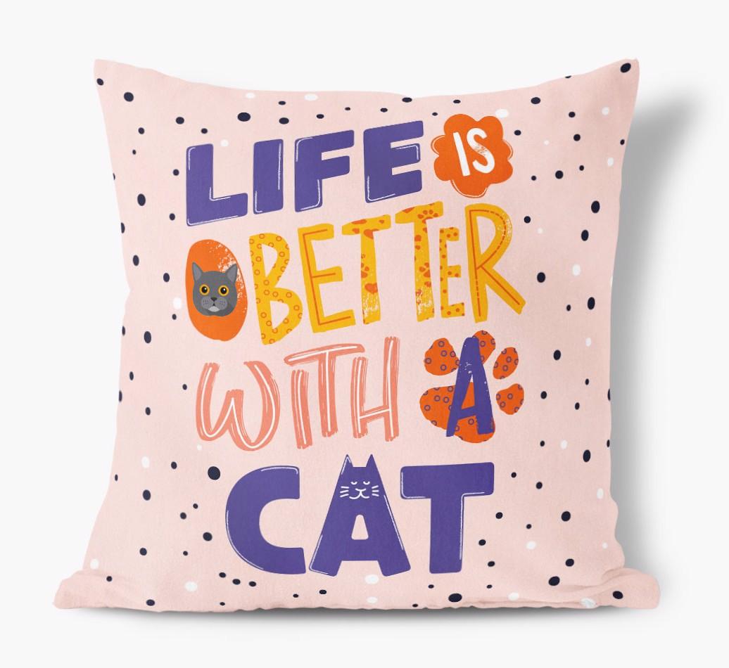 Life Is Better With a Cat: Personalized Cat Soft Touch Pillow