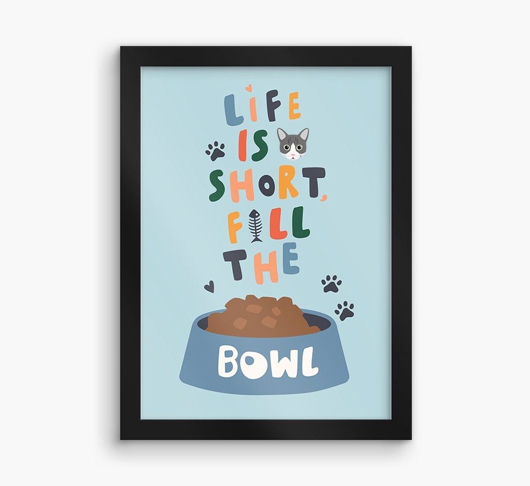 Life Is Short, Fill The Bowl: Personalized Cat Framed Print