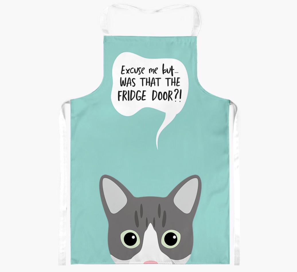 Featuring your cat's cheeky icon and available in five eye-catching colors, this apron is a must-have for parents of greedy kitties!