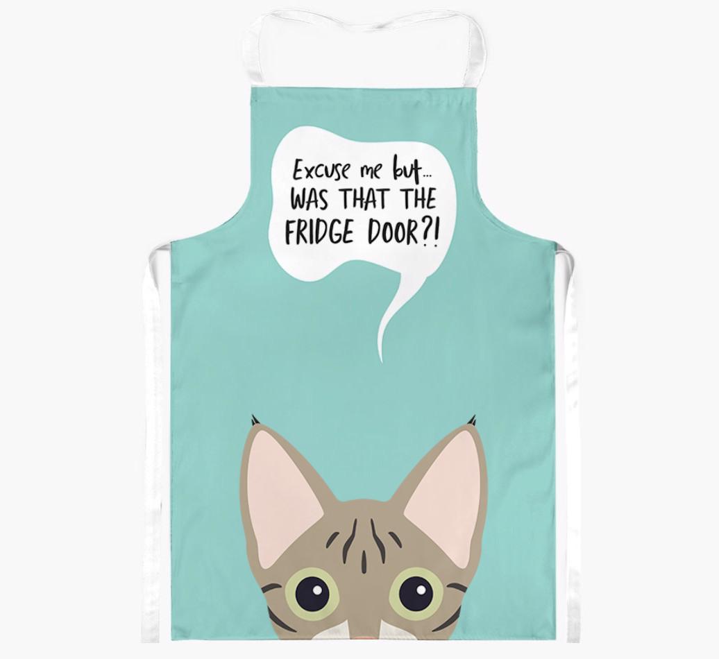 Featuring your cat's cheeky icon and available in five eye-catching colors, this apron is a must-have for parents of greedy kitties!