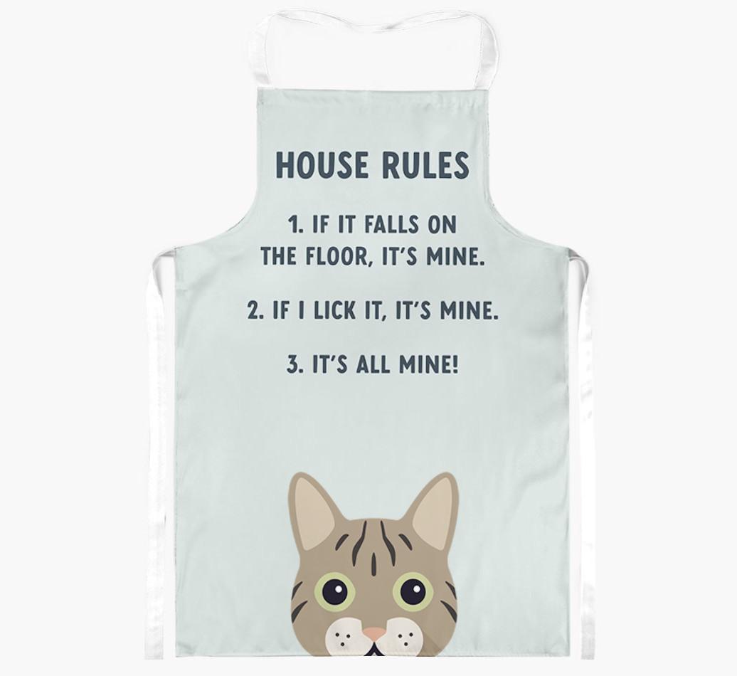 A fun way to show off your greedy kitty, this stylish apron is personalized with your feline friend's icon and features their rules when it comes to food.
