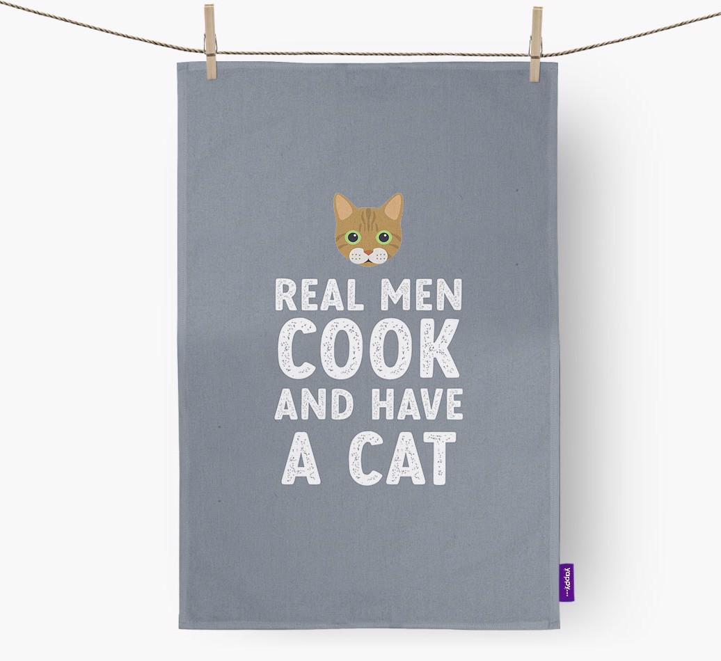 Real Men Cook And Have A Cat: Personalized Cat Dish Towel