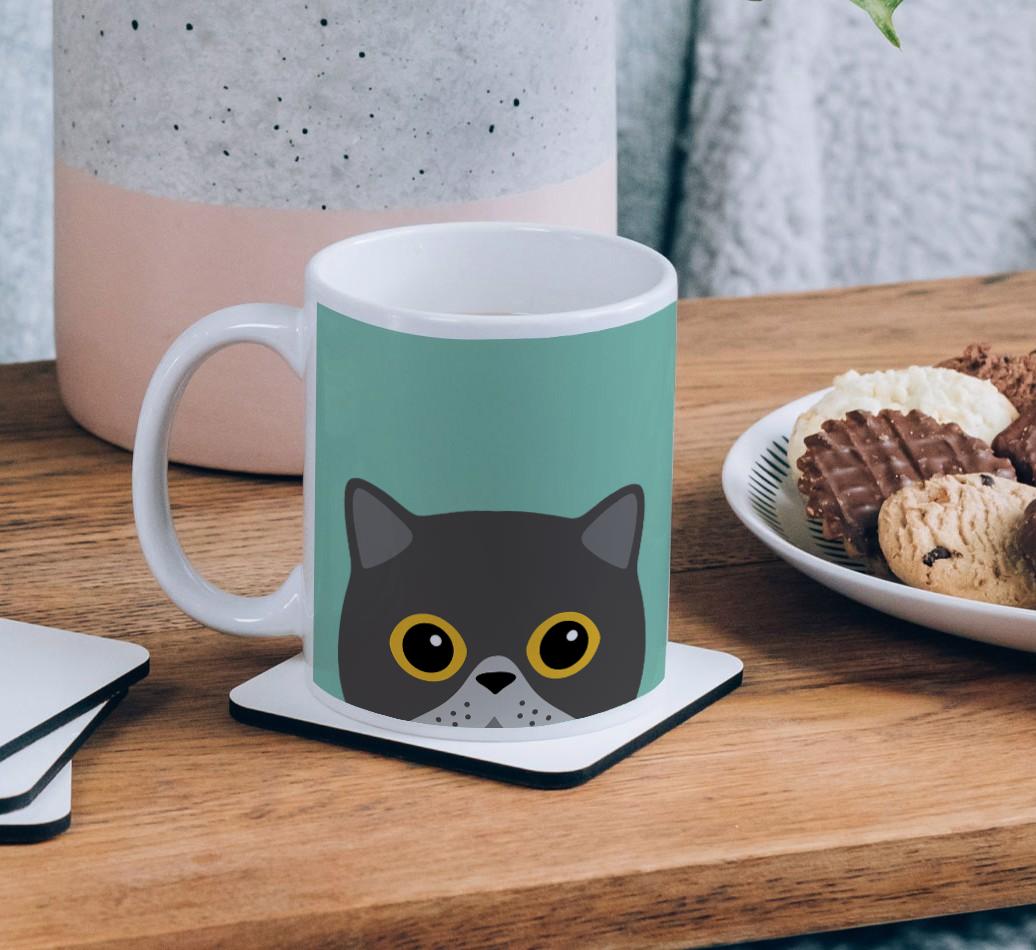 Enjoy the perfect coffee break with a mug that stars your feline friend! Featuring a Yappy.com exclusive Cat peeking icon, this pawgeous mug will look at home in any cat lover's kitchen and we're pretty sure Exotic will be a fan too.