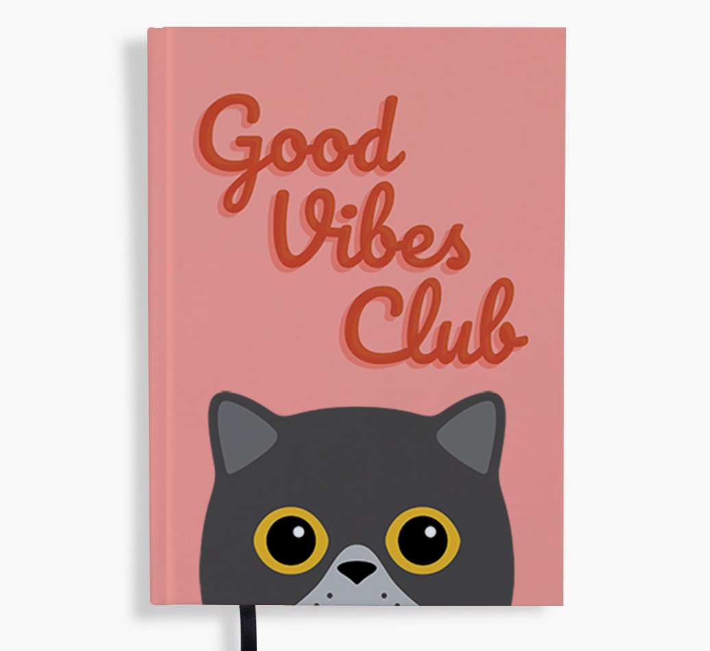 Are you and Exotic all about the good vibes? Customized with your kitty's cheeky icon, this sleek and stylish notebook is the purrfect way to show off the purrresident member of the Good Vibes Club!