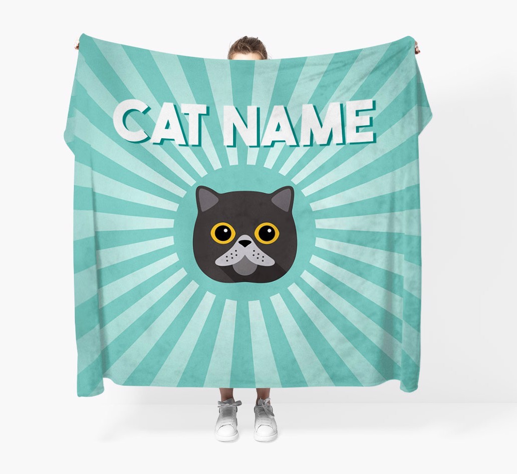 With your Cat’s icon beaming at the center of this stunning sunbeam design, this blanket is personalized with Exotic’s name to make it even more special.