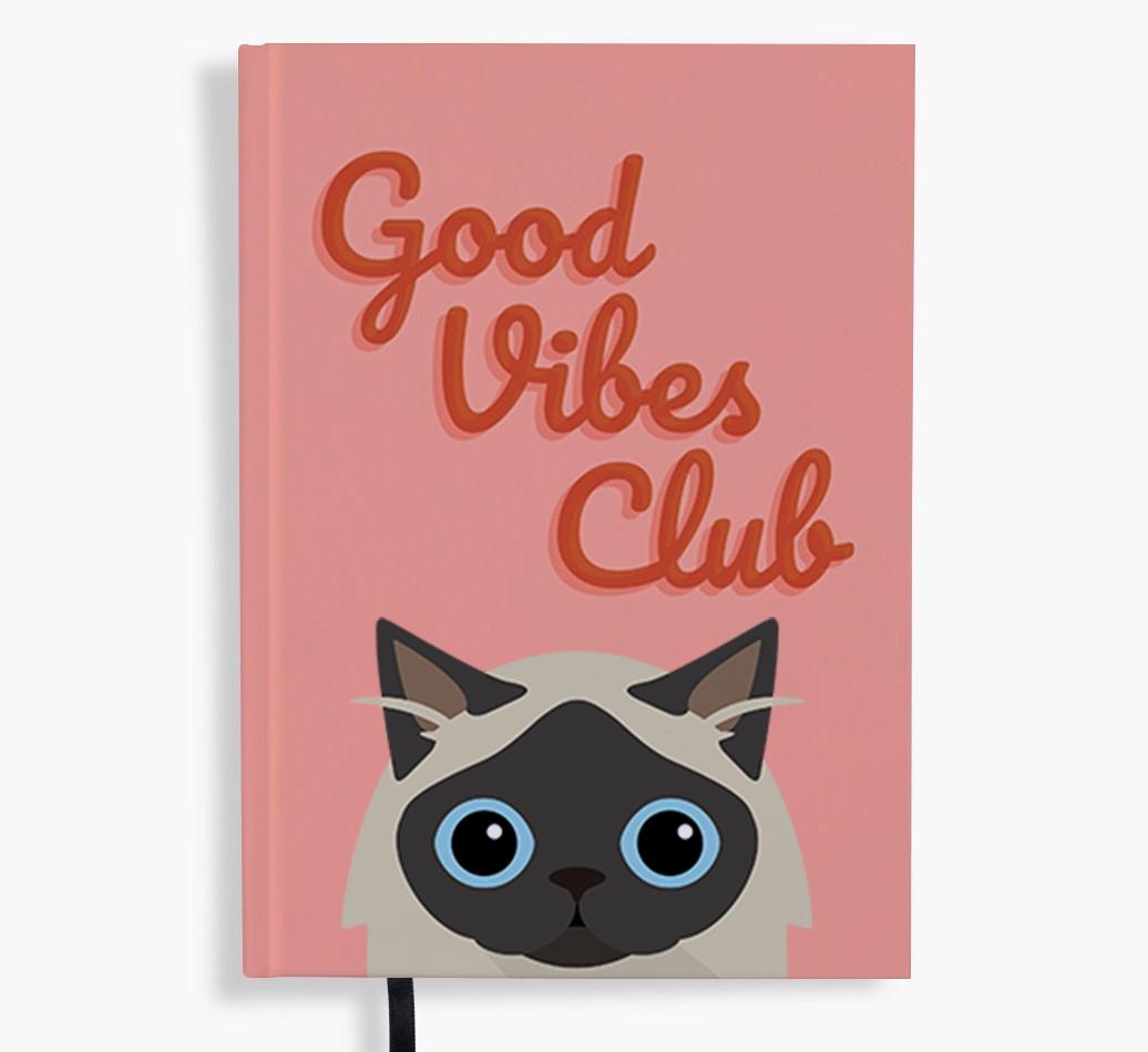 Are you and Himalayan all about the good vibes? Customized with your kitty's cheeky icon, this sleek and stylish notebook is the purrfect way to show off the purrresident member of the Good Vibes Club!