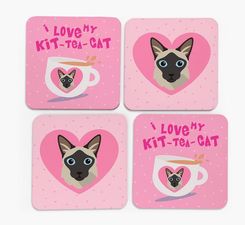 'I Love My Kit-Tea-Cat' - Personalized Javanese Coasters (Set of 4)