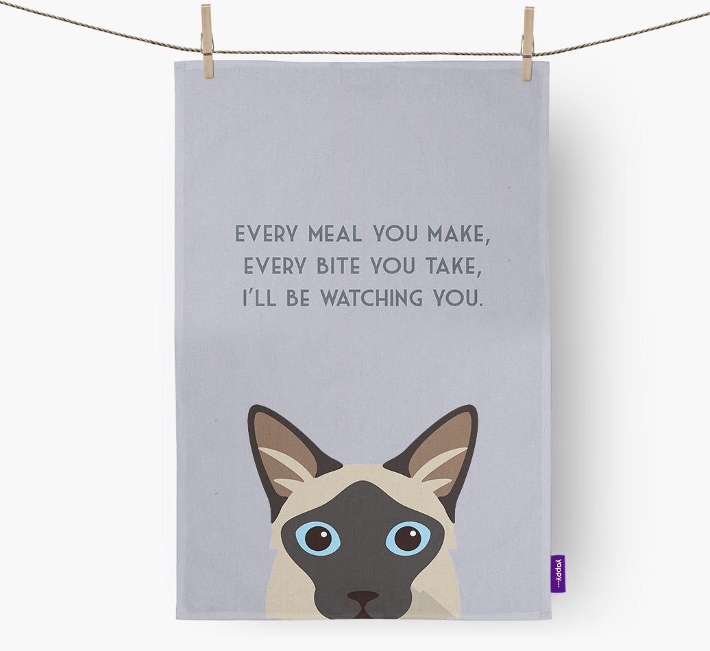 Printed with the words: ‘Every meal you make, every bite you take, I’ll be watching you’, this dish towel is purrfect for letting your cheeky Javanese know you’re onto them!