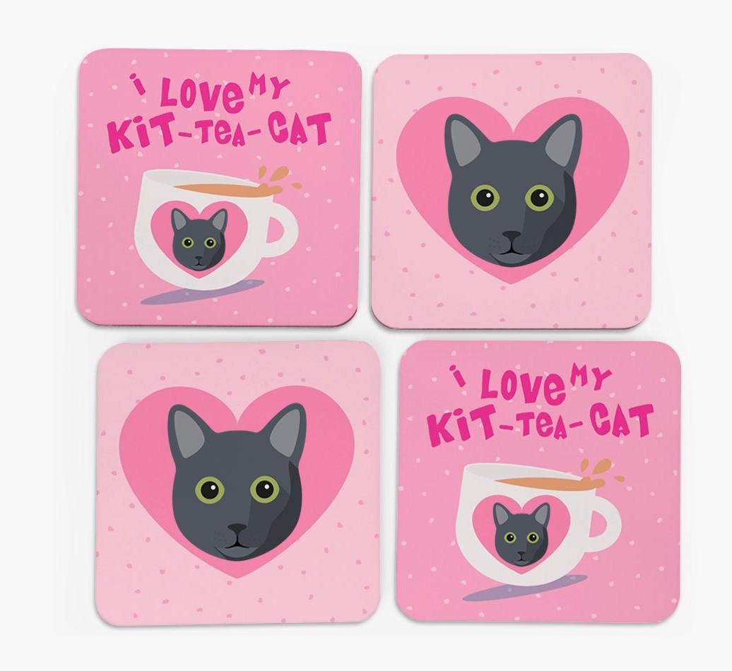 'I Love My Kit-Tea-Cat' - Personalized Korat Coasters (Set of 4)