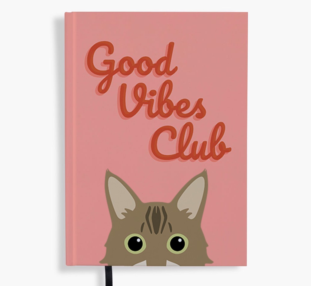 Are you and LaPerm all about the good vibes? Customized with your kitty's cheeky icon, this sleek and stylish notebook is the purrfect way to show off the purrresident member of the Good Vibes Club!