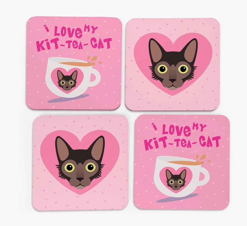 'I Love My Kit-Tea-Cat' - Personalized Lykoi Coasters (Set of 4)