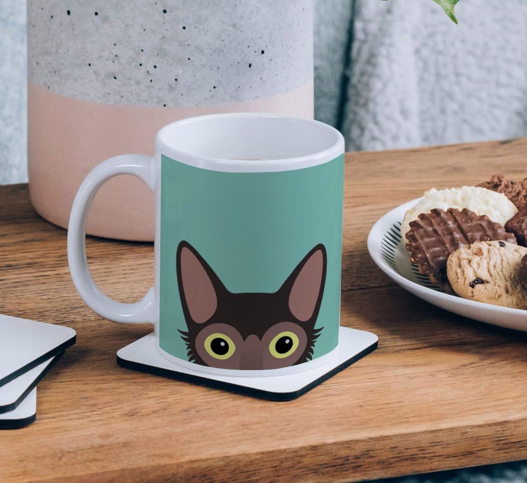 Enjoy the perfect coffee break with a mug that stars your feline friend! Featuring a Yappy.com exclusive Lykoi peeking icon, this pawgeous mug will look at home in any cat lover's kitchen and we're pretty sure Lykoi will be a fan too.
