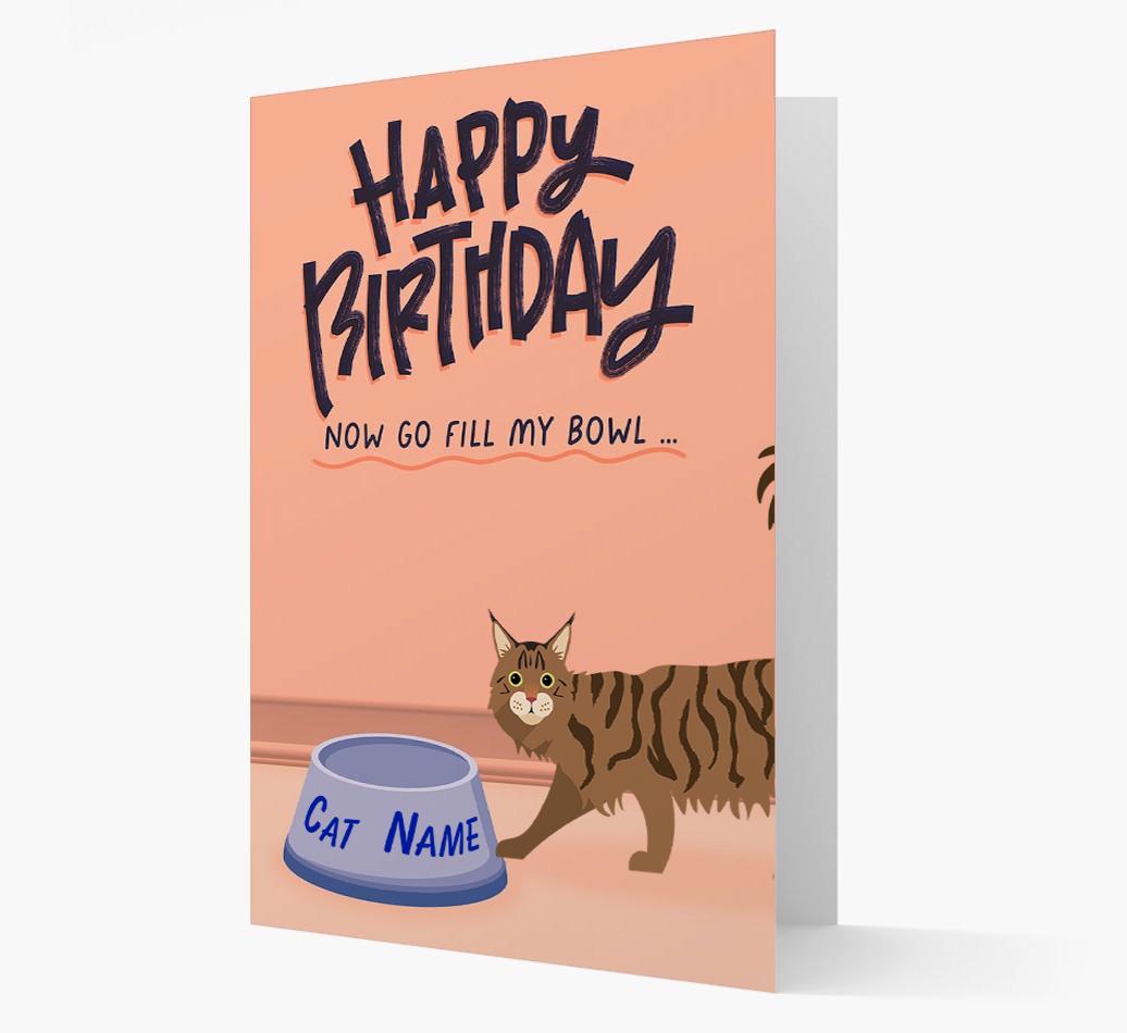 Personalized with your Cat’s icon and name and available in four colors, this card is purrfect for Cat’s who love to wish you happy birthday but equally love their feline food!