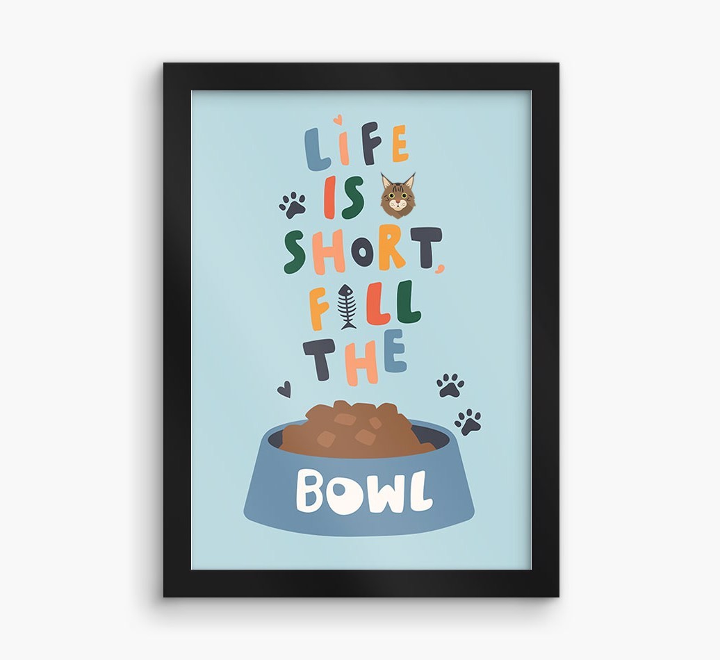 Life Is Short, Fill The Bowl: Personalized Cat Framed Print