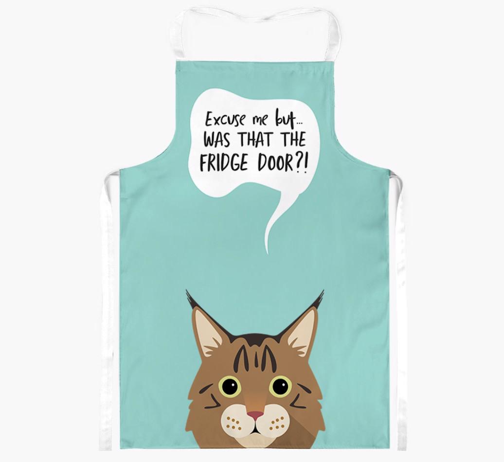Featuring your cat's cheeky icon and available in five eye-catching colors, this apron is a must-have for parents of greedy kitties!