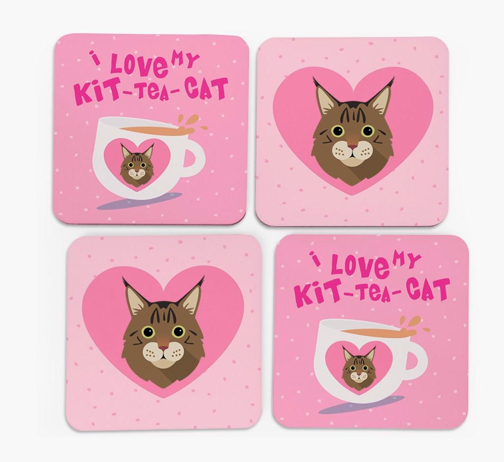 'I Love My Kit-Tea-Cat' - Personalized Maine Coon Coasters (Set of 4)