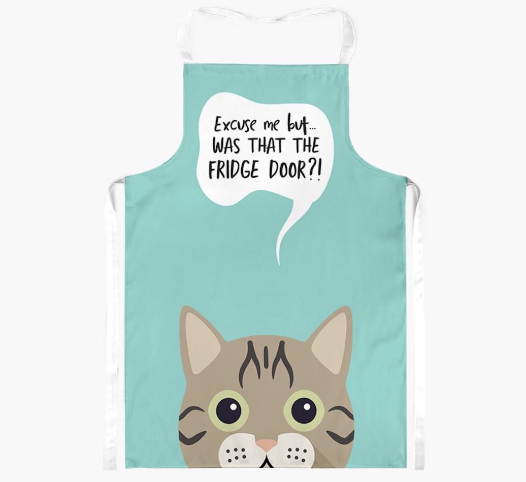 Featuring your cat's cheeky icon and available in five eye-catching colors, this apron is a must-have for parents of greedy kitties!