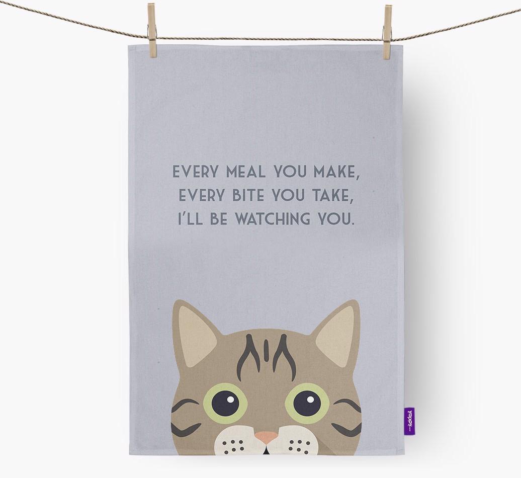 Printed with the words: ‘Every meal you make, every bite you take, I’ll be watching you’, this dish towel is purrfect for letting your cheeky Manx know you’re onto them!