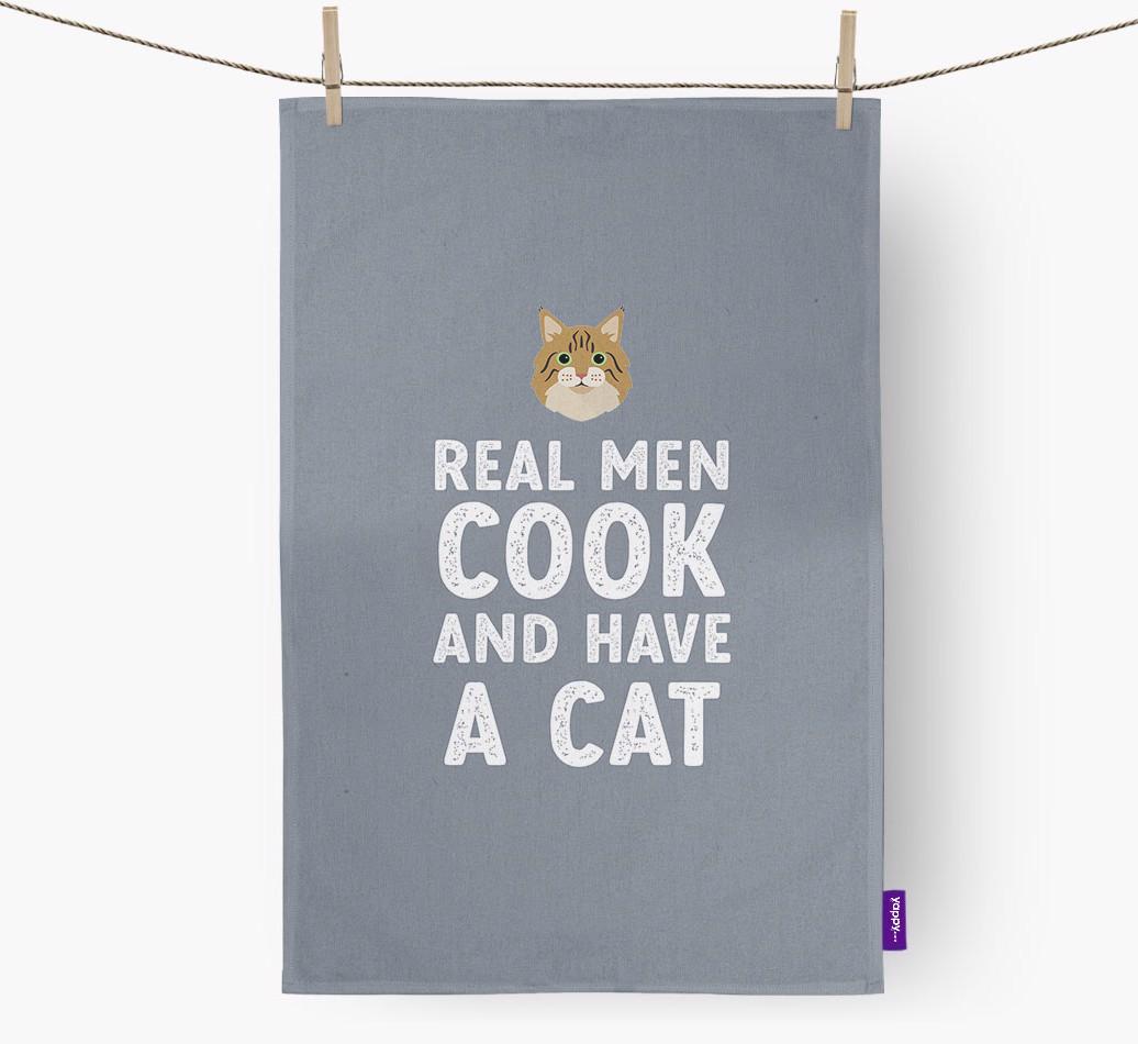 Real Men Cook And Have A Cat: Personalized Norwegian Forest Cat Dish Towel