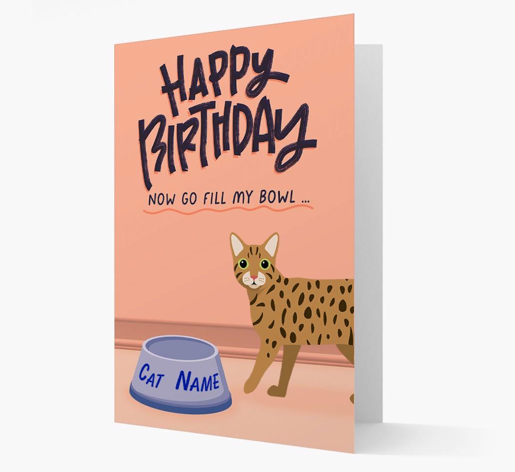 Personalized with your Ocicat’s icon and name and available in four colors, this card is purrfect for Ocicat’s who love to wish you happy birthday but equally love their feline food!