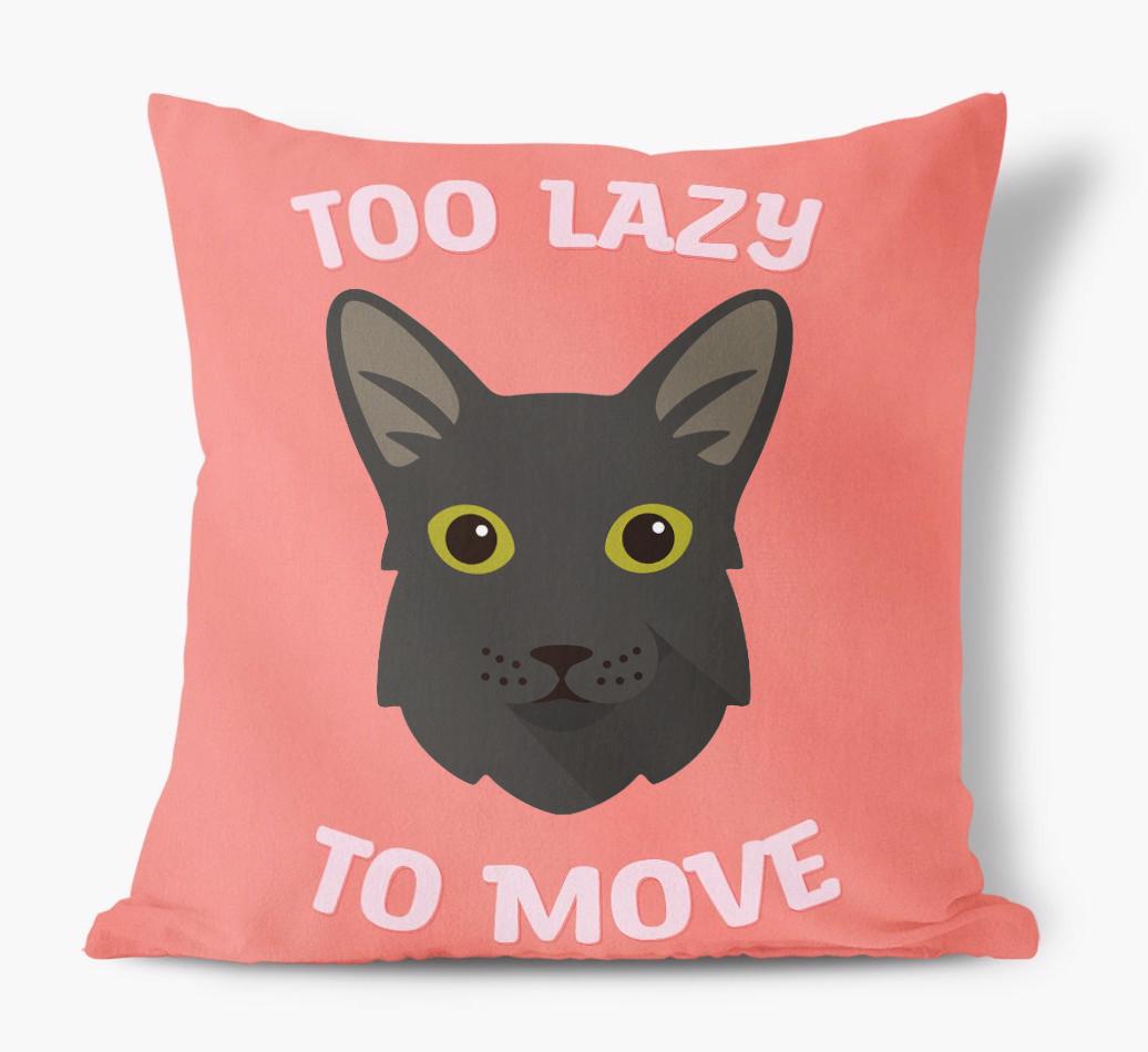 Featuring your Cat's icon, the words 'Too Lazy To Move' and available in five bold colors, this pillow will add a sprinkle of Oriental Longhair's pawsonality to any living area.