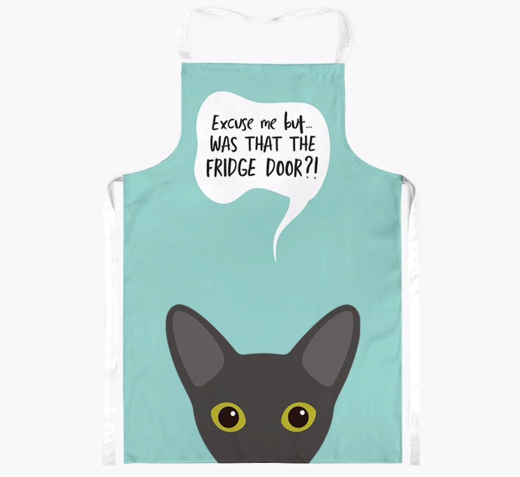 Featuring your cat's cheeky icon and available in five eye-catching colors, this apron is a must-have for parents of greedy kitties!