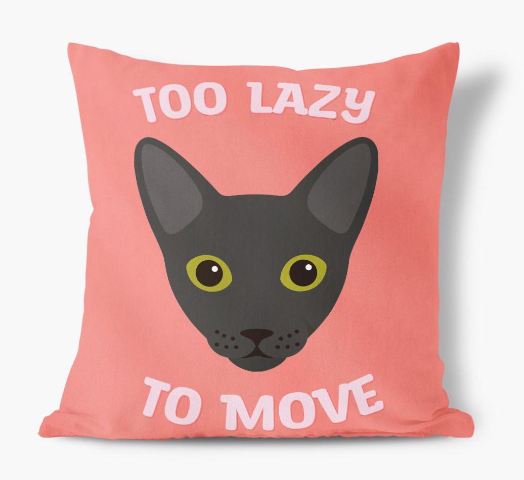 Featuring your Cat's icon, the words 'Too Lazy To Move' and available in five bold colors, this pillow will add a sprinkle of Oriental Shorthair's pawsonality to any living area.