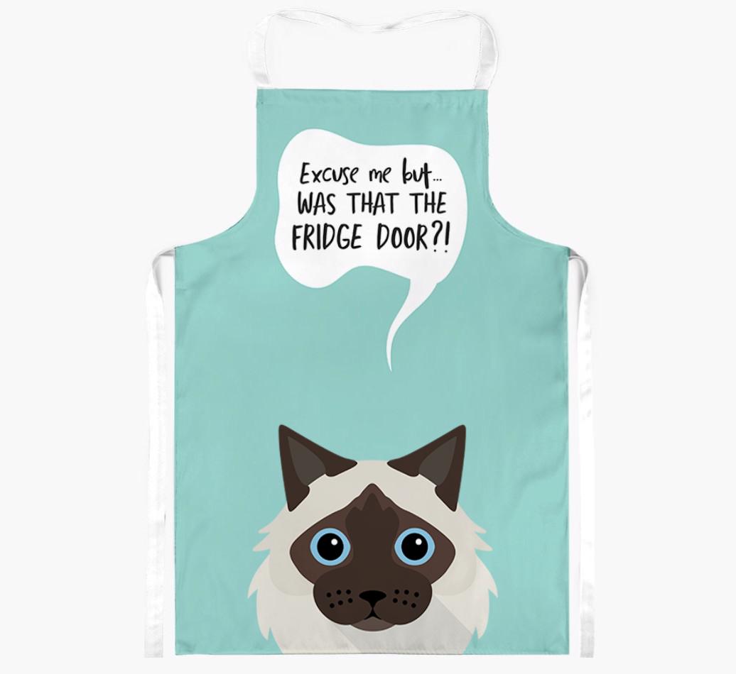 Featuring your cat's cheeky icon and available in five eye-catching colors, this apron is a must-have for parents of greedy kitties!