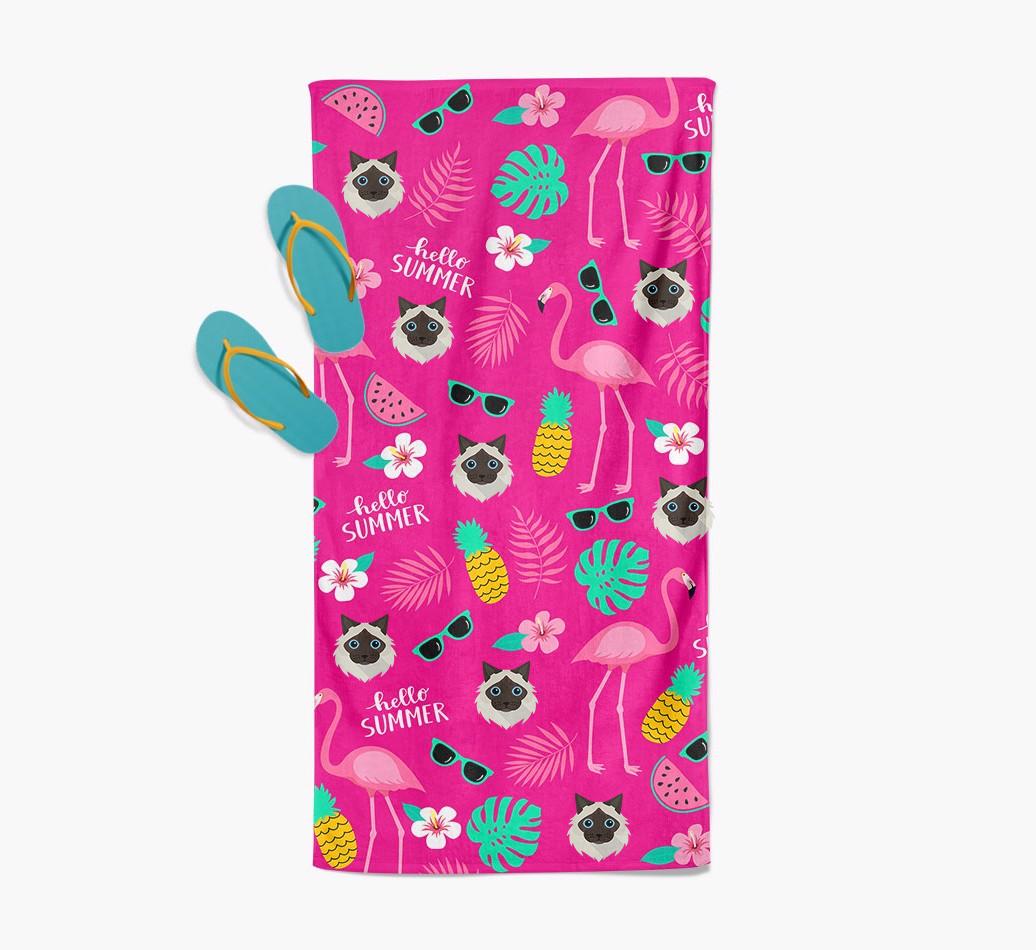 This flamingo-themed towel is the purrfect way to stand out from the crowd when catching rays, and with our cute Cat icons making an appearance, you’ll be sure that all eyes will be on you!