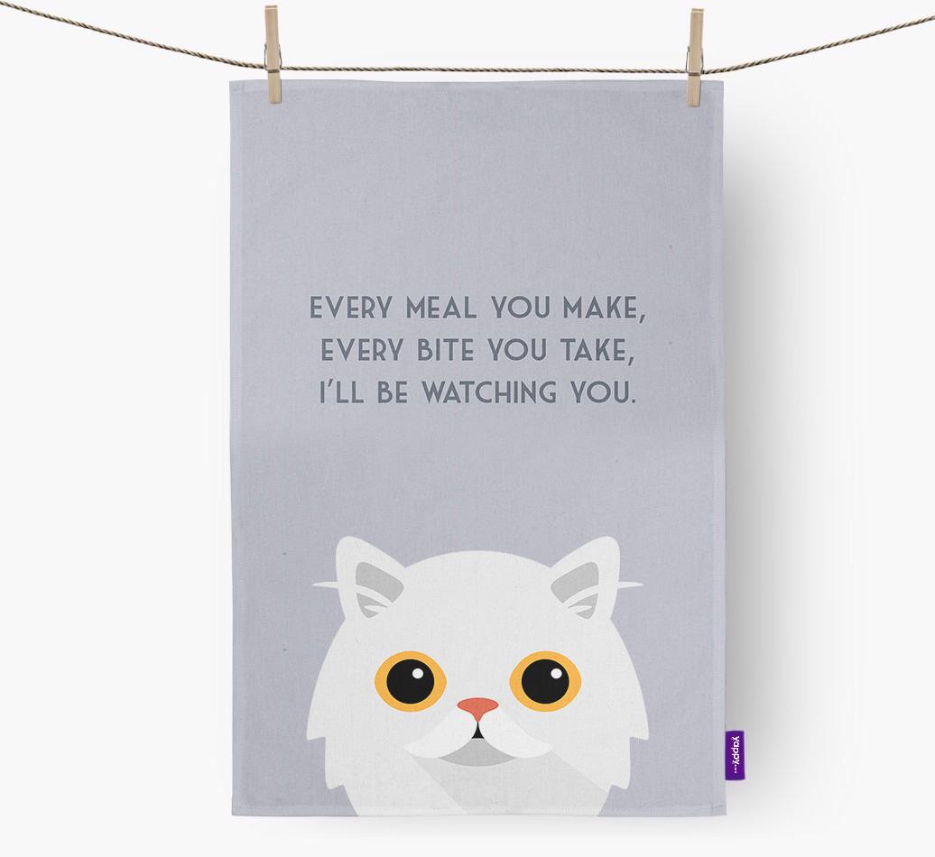 Printed with the words: ‘Every meal you make, every bite you take, I’ll be watching you’, this dish towel is purrfect for letting your cheeky Persian Modern know you’re onto them!