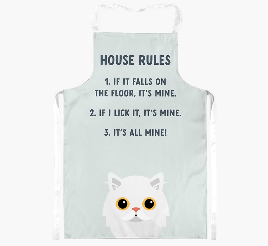 A fun way to show off your greedy kitty, this stylish apron is personalized with your feline friend's icon and features their rules when it comes to food.