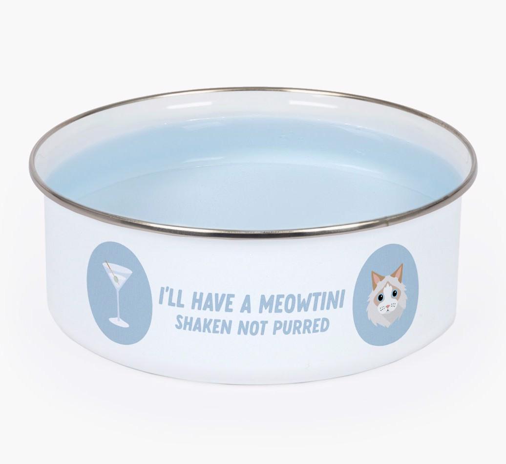 Meowtini: Personalized Ragamuffin Enamel Cat Bowl