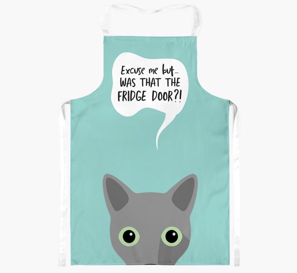Featuring your cat's cheeky icon and available in five eye-catching colors, this apron is a must-have for parents of greedy kitties!