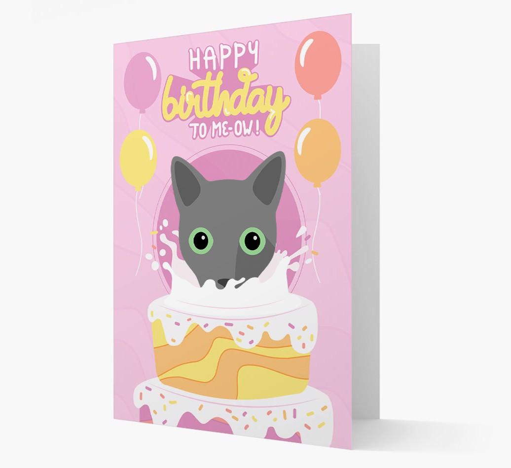 Personalized with your Cat's icon, with this birthday card on your shelf, everyone will be able to see what Russian Blue does best, devouring cake whilst wishing themselves a happy birthday!