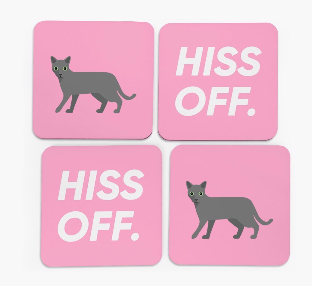 'Hiss Off' - Personalized Russian Blue Coasters (Set of 4)