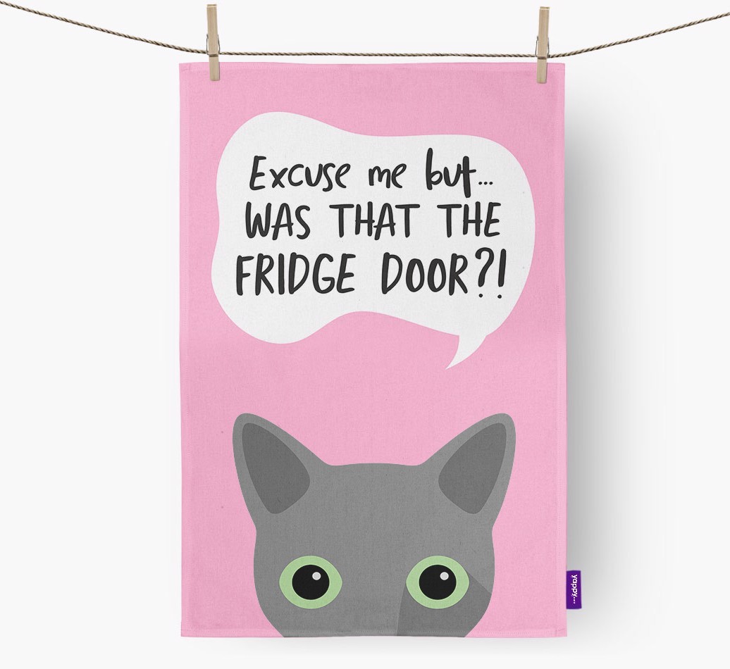 'Was That The Fridge Door?!' - Personalized Russian Blue Dish Towel