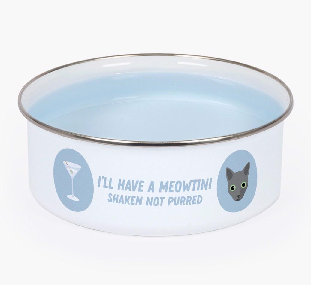Meowtini: Personalized Russian Blue Enamel Cat Bowl