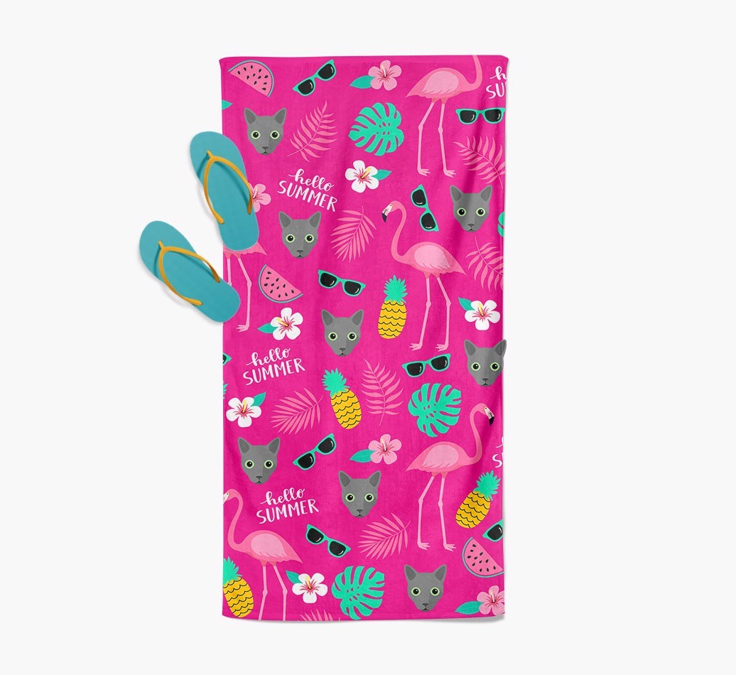 Radiate tropical vibes this summer with this furnomenal pool towel featuring your furvorite Cat!