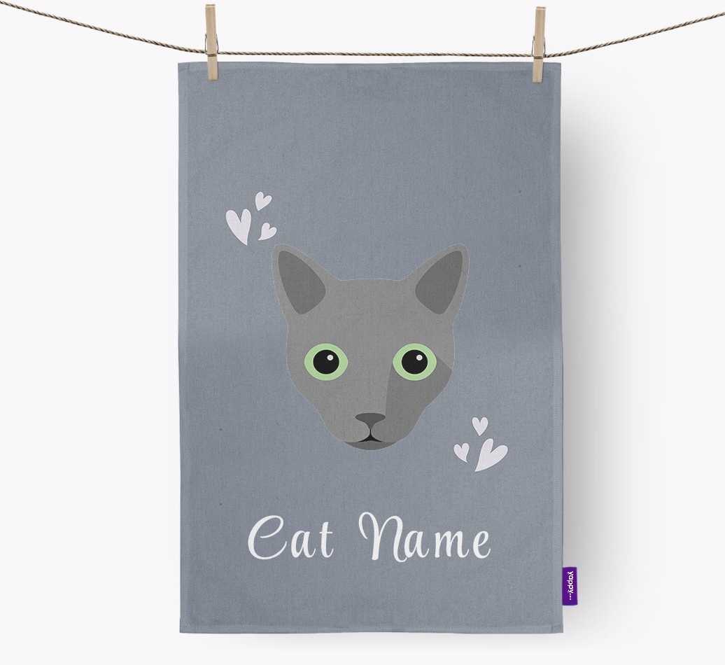 A furbulous addition to every Russian Blue lover's kitchen, this personalized dish towel is great for showing off the one you've got strong "felines" for - Russian Blue!