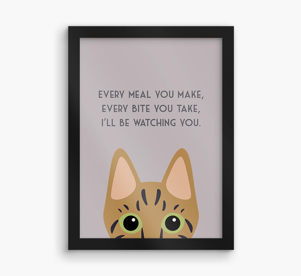 Printed with the words, ‘Every meal you make, every bite you take, I’ll be watching you’ and complete with our cute Savannah peeking from the bottom of the design, this artwork will look great on display in the kitchen or anywhere Savannah likes to watch you eat!