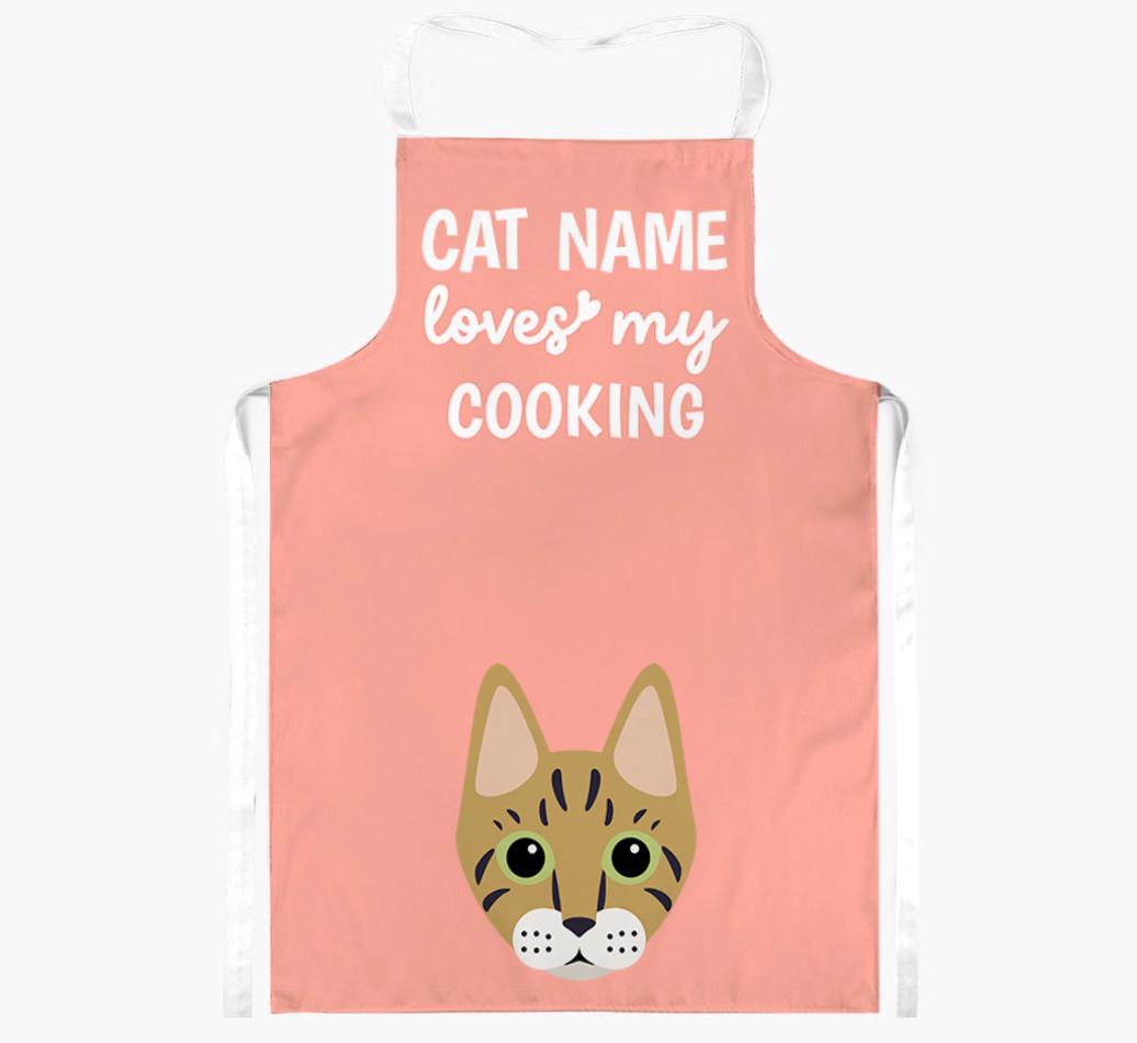 Let everyone know that your feline friend seriously loves your cooking with this contemporary apron, the purrfect addition to any kitchen! It's even personalized with their name and icon to make it an extra special gift.