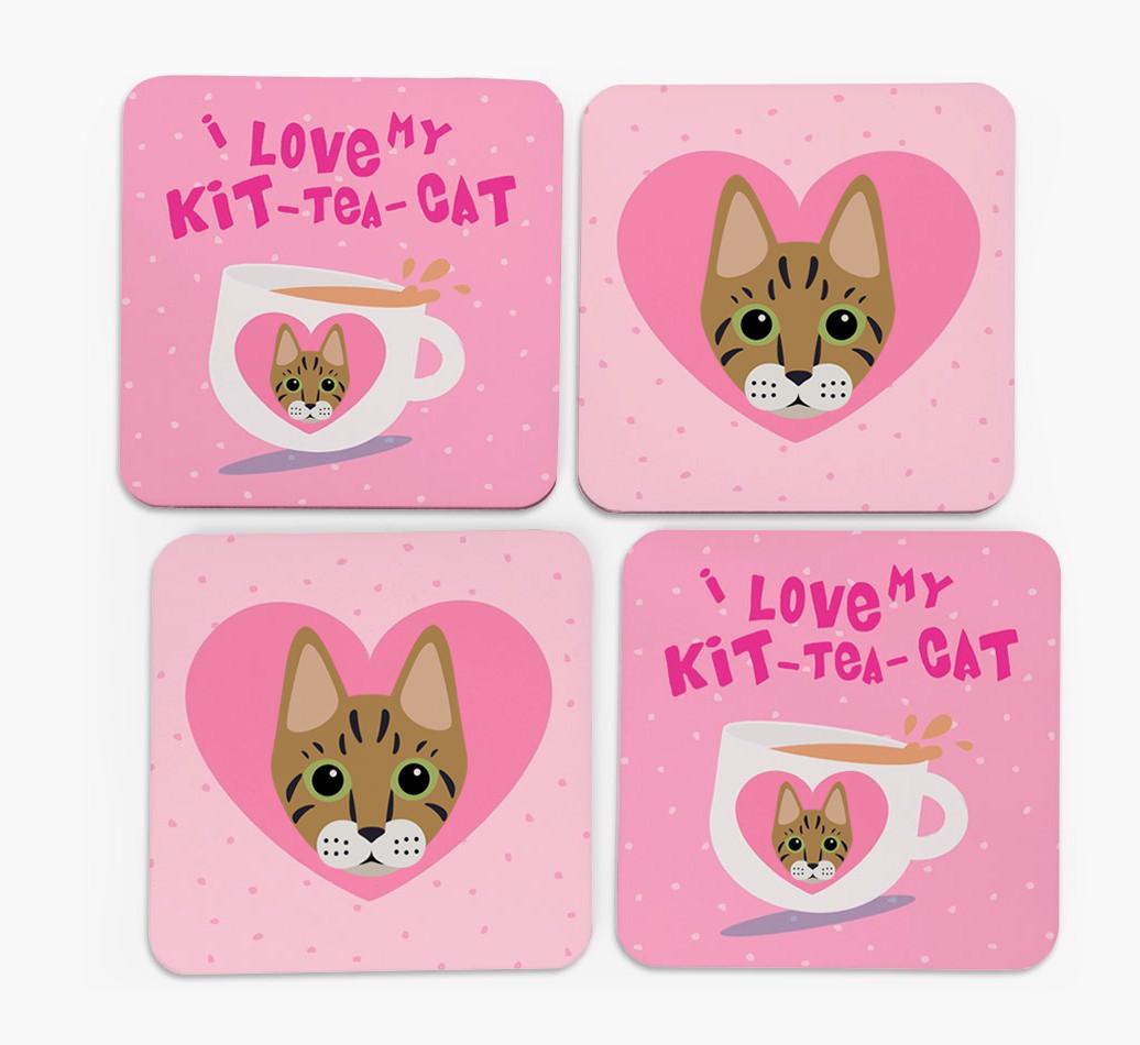 'I Love My Kit-Tea-Cat' - Personalized Savannah Coasters (Set of 4)