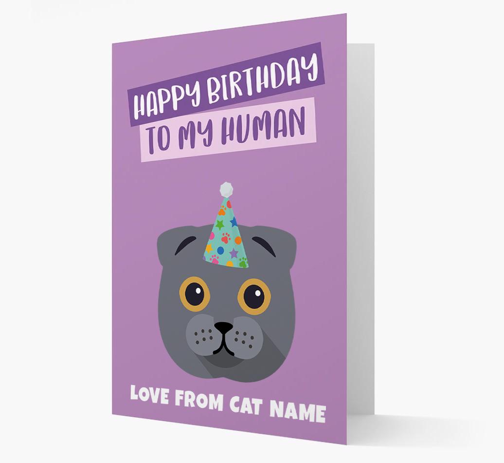 'Happy Birthday to My Human' - Personalized Scottish Fold Card