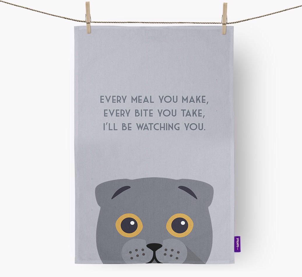 'I'll Be Watching You' - Personalized Scottish Fold Dish Towel