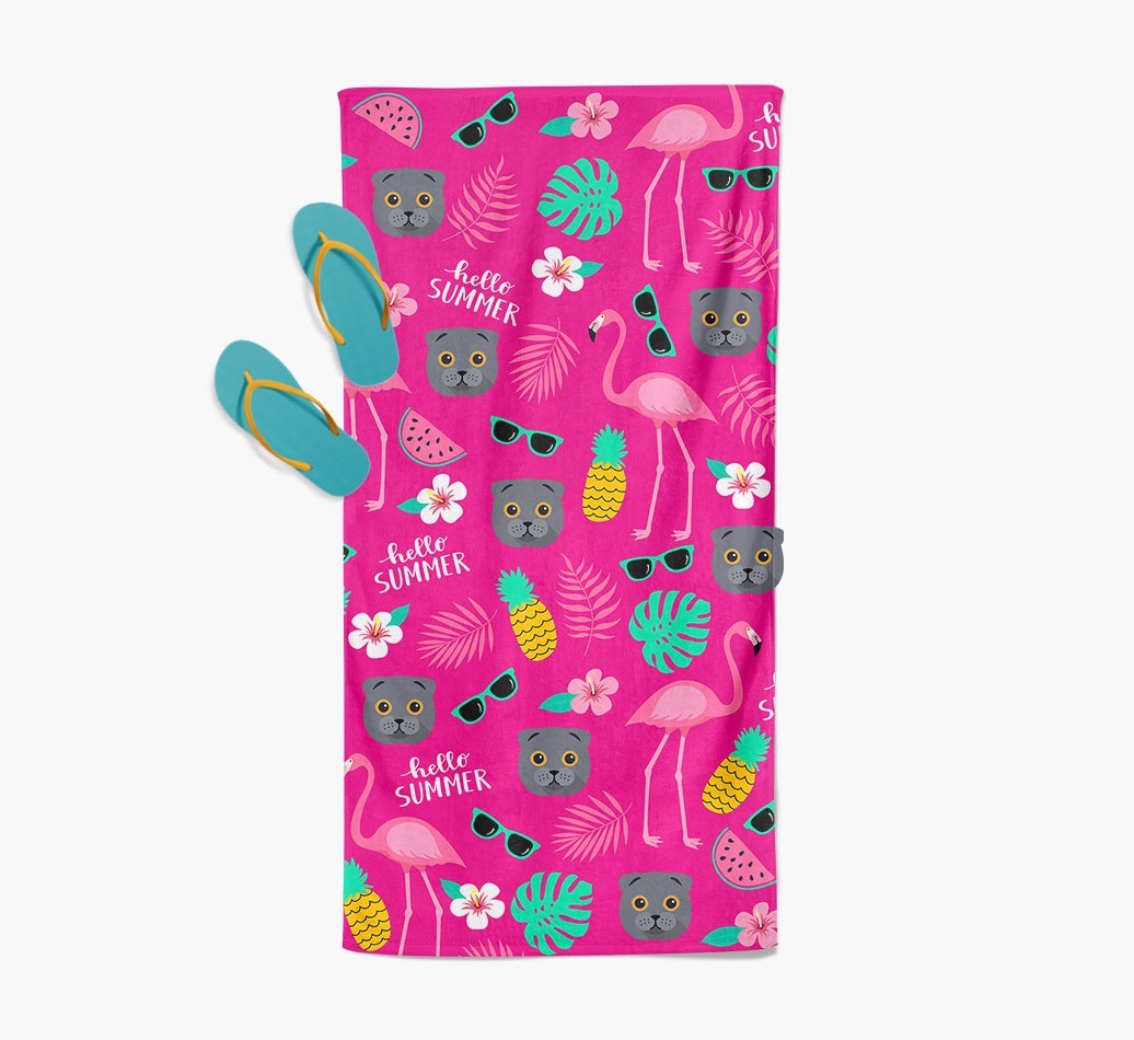 This flamingo-themed towel is the purrfect way to stand out from the crowd when catching rays, and with our cute Scottish Fold icons making an appearance, you’ll be sure that all eyes will be on you!