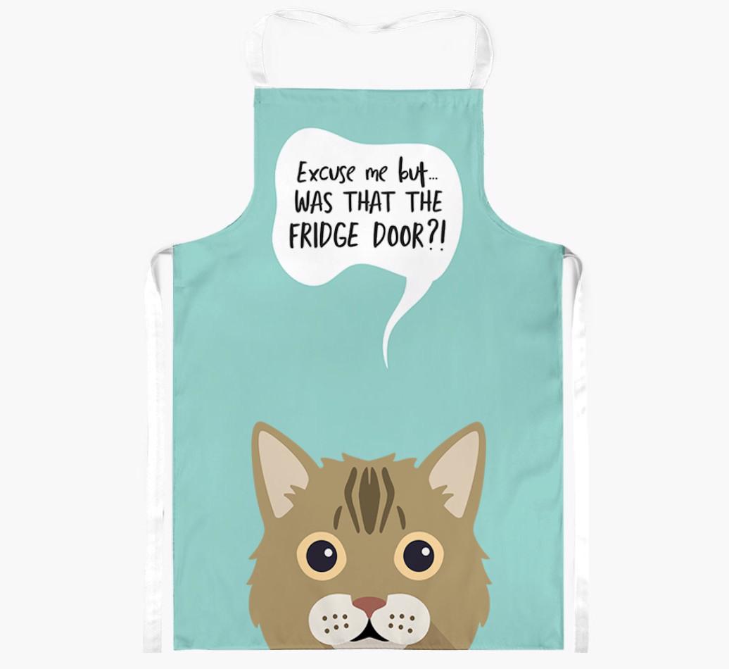 Featuring your cat's cheeky icon and available in five eye-catching colors, this apron is a must-have for parents of greedy kitties!